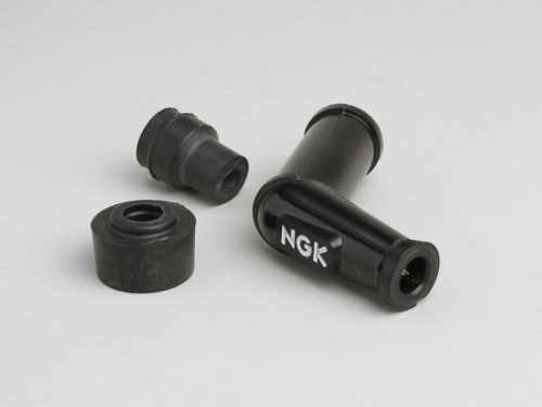 Le candele di accensione si differenziano per i seguenti aspetti: Diametro della filettatura Le filettature usuali sono M10, M12 e M14. I veicoli classici hanno di solito un filetto M14. I 4 tempi e i moderni 2 tempi a iniezione utilizzano le spine più piccole con M10 o M12. Lunghezza del filetto Le lunghezze comuni dei filetti sono 19 mm (filetto lungo) e 12,7 mm (filetto corto). Valore termico Il valore termico è decisivo per la resistenza alla fatica termica della candela e per il suo effetto autopulente. Si distingue quindi tra le cosiddette candele di accensione a freddo e a caldo. Una candela fredda è per i motori che sviluppano una temperatura della camera di combustione molto elevata, di solito si tratta di motori che hanno una potenza elevata misurata dalla loro cilindrata. Una candela di accensione a caldo, invece, viene utilizzata nei motori di produzione in serie con carichi ridotti. Questo tipo di candela raggiunge rapidamente una temperatura elevata e la fuliggine sulla candela brucia bene. La resistenza alla temperatura è ottenuta con isolatori di diversa concezione. Una candela fredda può emettere molta temperatura attraverso la testa del cilindro, mentre una candela fredda impedisce fortemente questo. Il valore di calore non ha nulla a che vedere con la resistenza o le prestazioni di una candela di accensione. Una candela fredda in un motore freddo (debole) lubrifica o fuliggine e può quindi rompersi senza danneggiare il motore stesso. Una candela calda in un motore da corsa brucia e danneggia il motore, di solito in modo grave. Il potere calorifico di una candela di accensione non è standardizzato. Ogni produttore ha il suo codice. NGK da freddo a caldo = 10-9-8-7-6 Bosch da freddo a caldo = 2-3-4-4-5-6 DENSO da freddo a caldo = 37-34-31-27-24-22-20-16-14 Materiale degli elettrodi Qui vengono utilizzati rame, platino, argento o iridio. Il rame è il più comune, seguito da argento e platino. A causa dei prezzi elevati dei metalli preziosi, anche le candele di accensione sono di conseguenza più costose delle loro controparti in rame. Il materiale è in definitiva interessante solo per l'usura, solo gli elettrodi di iridio estremamente sottili (Ø=0,6 mm) hanno una tensione di accensione più alta, la diffusione del fronte di fiamma nella camera di combustione è migliorata. AI-translation