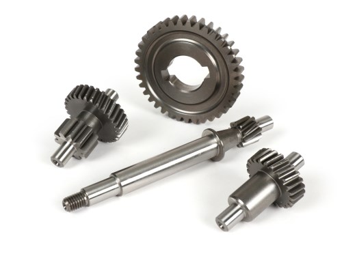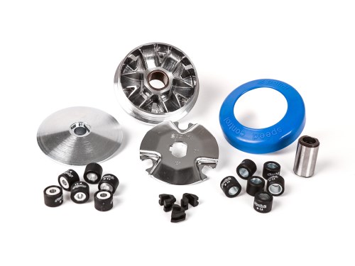 Il coperchio del cambio Pinasco consente di convertire una scatola di ciclomotore con puleggia fissa in variomatic. Oltre a questo coperchio è necessario quanto segue: Cambio per funzionamento Vario (es. CIF, Malossi o originale Piaggio per Vario) Variomatic (ad es. Malossi) Cinghia trapezoidale per funzionamento Vario Gruppo convertitore posteriore Coperchio del motore per Vario Cambio ciclistico / leva (può essere preso dal cambio mono) Il grande vantaggio del variatore è che l'intera potenza del motore viene sfruttata fin dal primo metro. Il rapporto di trasmissione viene modificato continuamente e la velocità rimane costante al regime selezionato dalla massa dei pesi centrifughi. Questo migliora enormemente l'accelerazione rispetto alla trasmissione fissa del ciclomotore. Le impennate e l'alta velocità massima sono ora possibili. Traduzione AI