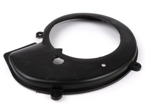 Lüfterradabdeckung -CIF- Die Lüfterradabdeckung oder Polradabdeckung ist ein wichtiges Bestandteil der Motorkühlung. Sollte am Originalteil ein Ausbruch oder ein Riss sein ist es für den dauerhaften Betrieb Notwendig die Abdeckung zu erneuern. Das Loch in der Abdeckung im unteren Bereich ist für den Zughalter der Hinterradbremse gedacht. Sollte der Zughalter oder Kabelhalter genannt ( 7675360) nicht benötigt werden kann das Loch einfach verschlossen werden.
