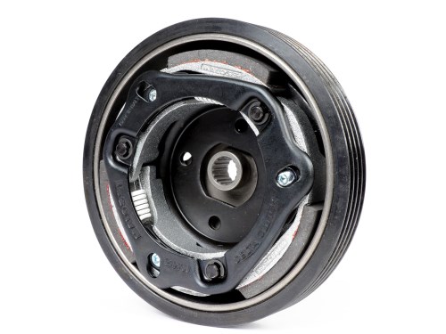 SISTEMA DELTA Sistema di frizione centrifuga con campana per Scooter 50 RACING Il sistema comprende : Frizione regolabile brevettata (frizione Delta). Campana frizione rinforzata (Wing clutch bell) con alette di raffreddamento, equilibrata dinamicamente, sviluppata per la competizione e l'uso sportivo. AI-translation