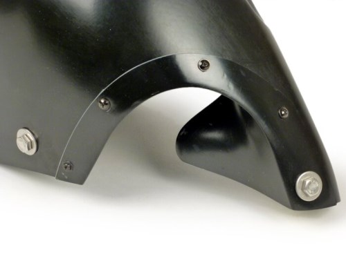 I coperchi dei cilindri BSK sono stati appositamente progettati per il cilindro Quattrini M200. Sono realizzati in GFK (plastica rinforzata con fibre di vetro) e sono realizzati amorevolmente a mano in piccole serie. Questo non li rende a buon mercato rispetto ai prodotti industriali di massa, ma il prodotto finale vale ogni centesimo. Le cappe sono disponibili in due versioni. La versione più semplice non ha un'apertura per il collettore di scarico. Questo può essere facilmente fresato nella cappa con un utensile Dremel o simile. La versione più elaborata ha un tunnel integrato per il collettore di scarico. In questo modo la radiazione di calore viene isolata dall'aria di raffreddamento del cilindro subito dopo averlo lasciato, migliorando così l'equilibrio termico del cilindro. In alternativa, l'inserto del condotto dell'aria imbullonato può essere rimosso anche per altre varianti del collettore. Copertura realizzata con amore che completa l'M200. AI-translation
