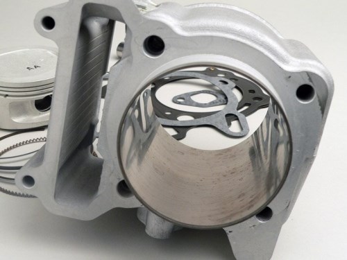 Cilindro in alluminio rivestito in Nikasil per una migliore dissipazione del calore.Il pistone sportivo con un design a 3 anelli molto compatto offre una tenuta perfetta contro l'alesaggio del cilindro. Il pistone stesso ha un contenuto di silicone molto elevato, che si traduce in un coefficiente di espansione molto basso sotto carico. Il pistone è stato rinforzato nei punti nevralgici ed è anche più leggero del pedale standard. AI-translation
