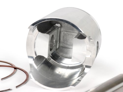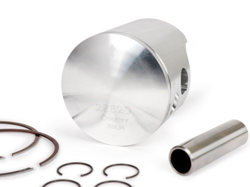 Pistone fuso di alta qualità per il cilindro Quattrini M200, progettato da Overrev e realizzato da Wössner Caratteristiche rispetto al pistone originale M200 di Quattrini: Gonna del pistone più lunga dell'M200 - per una migliore guida e una ridotta inclinazione del pistone. Un solo anello del pistone (non è più possibile la rottura del materiale tra il primo e il secondo anello) Spina del pistone desaxizzata per lo scarico meccanico, riduzione del chattering Altezza di compressione: 31,5 mm (1,5 mm in più rispetto all'originale M200, non c'è bisogno di rimuovere l'alloggiamento per le modifiche alla fasatura sull'albero motore originale, basta aggiungere 1,5 mm di guarnizione della testa, o testa+guarnizione del piede se si desidera) Lunghezza dello spinotto del pistone: 56,2mm (più lungo del pistone originale) Caratteristiche identiche al pistone originale M200: Posizione dell'anello: tra la porta di spinta e la fuoriuscita laterale del cilindro M200 Spina del pistone: 16mm Corona del pistone: come l'originale M200 Dimensione nominale: 66.94mm Peso: 265g Incluso c'è un ulteriore anello di ricambio per il pistone, così come un secondo paio di clip per lo spinotto del pistone. AI-translation