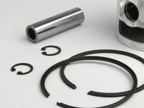 Kit completo di pistoniCONSIGLIO: Si prega di montare sempre con attenzione le fasce elastiche. Le fasce elastiche dei pistoni in materiale fuso hanno solo un'elasticità limitata e si rompono in modo relativamente rapido. Alcuni pistoni hanno fasce elastiche profilate trapezoidalmente (le cosiddette fasce trapezoidali), che si inseriscono in una sola posizione di montaggio. Se l'anello non si muove liberamente, si prega di allentarlo con attenzione e di reinstallarlo a testa in giù. AI-translation
