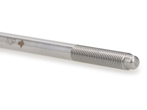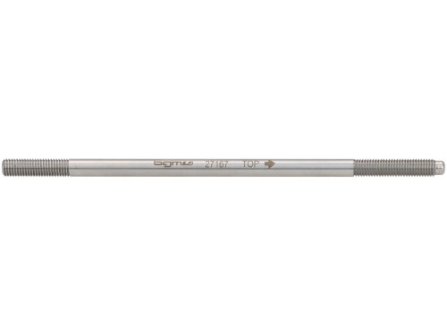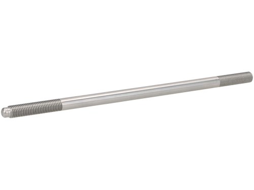 Stehbolzen für Zylinder BGM PRO in verlängerter Ausführung mit 167mm Länge. Passend für Motorkonzepte bei denen der Zylinder mit Spacern zur Verwendung einer Kurbelwelle mit längerem Pleuel oder zur Erhöhung der Steuerwinkel deutlich angehoben werden soll. Dabei ist die Aufteilung der Gewinde auf dem Stehbolzen so gewählt, dass immer noch originale Zylinder Bauhöhe verwendet werden kann. Der Schaftdurchmesser (der Bereich ohne Gewinde) der Bolzen beträgt 6,9mm, und ist damit passend für viele Rennzylinder bei denen die Toleranzen für die Bohrung der Zylinderstehbolzen sehr eng gewählt sind. Das Ende zum Einschrauben in das Motorgehäuse ist mit einem speziellen Gewindetyp für festen Sitz im Motorgehäuse hergestellt und entspricht damit den bewährten Zylinderstehbolzen von Piaggio. Dieses Festsitzgewinde bietet den großen Vorteil, dass die Gewindeflanken mit einer deutlich größeren Überdeckung im Motorgehäuse sitzen und durch diese Verbindung höhere Spitzenkräfte aufnehmen kann. Gefertigt werden diese BGM PRO Stehbolzen in Deutschland aus vergütetem CrMo Stahl und bieten dadurch eine sehr hohe Zugfestigkeit.