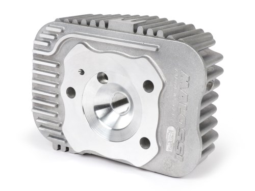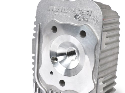 Malossi hat die Zylinderköpfe für die kleinen Piaggio Motoren jetzt auch mit Zentral Zündkerze und neuen Kühlrippen ausgestattet. Dadurch wird eine verbesserte Verbrennung und eine Optimalere Kühlung erreicht. Die neue Zylinderköpfe haben genug Material die eine individuelle Bearbeitung zulassen. Die CVF Köpfe verfügen über ein neues Dekompressionsventil das denn Brennraum jetzt besser Abdichten soll. Hinweis: Es wird eine Zündkerze mit Langgewinde benötigt.