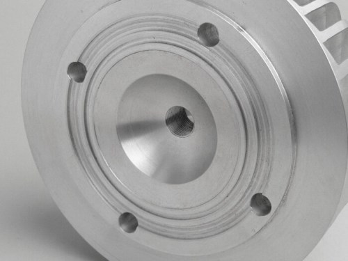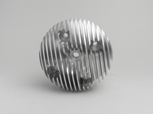 MMW testa cilindro T5 per 172 cc cilindri Malossi Ø=66mm. Assolutamente high-tech testa del cilindro fresata a CNC dal blocco di alluminio completo. Pertanto la testa è molto massiccia e solida. Questo aiuta notevolmente lo sviluppo del rumore. Ma bisogna fare attenzione che tra le alette di raffreddamento ci siano dei piccoli pezzi di gomma, come sulla testa standard, per assorbire le vibrazioni e quindi i rumori fastidiosi. Anche la superficie più grande delle alette di raffreddamento è molto meglio per il raffreddamento. La camera di combustione è progettata per la massima efficienza. I più alti valori di coppia e di prestazioni, uniti ad una maggiore affidabilità, non si escludono a vicenda. A l contrario, c'è una turbolenza molto migliore e una combustione più controllata, che può anche permettere esperimenti con la fasatura di accensione. AI-translation