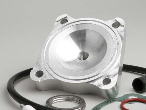 KB Racing testa cilindro -Evolution 2- per 172 - 180 cc Piaggio / Gilera 2T Maxi LC (raffreddato ad acqua) scooter. Testa cilindrica ideale per tutte le onde con corsa 52 mm. La camera di combustione è progettata in modo da poterci arrivare molto bene con il bordo di compressione . Tuttavia dovrebbe essere misurato, naturalmente. Il contorno della camera di combustione è stato progettato per ottenere il massimo delle prestazioni senza dover accettare alcuna restrizione in termini di durata. Al contrario! Il rapporto di compressione con questa testa ad alta tecnologia è di 1:12,5 (orig.:1:9,8, Malossi 1:10,5), che fornisce un aumento di potenza molto potente su tutta la gamma di velocità. La posizione della candela rimane invariata rispetto alla testa originale, in modo da poter utilizzare la testa esterna originale. Conclusione: Parte potente ad alte prestazioni , che aumenta le prestazioni E la durata. AI-translation