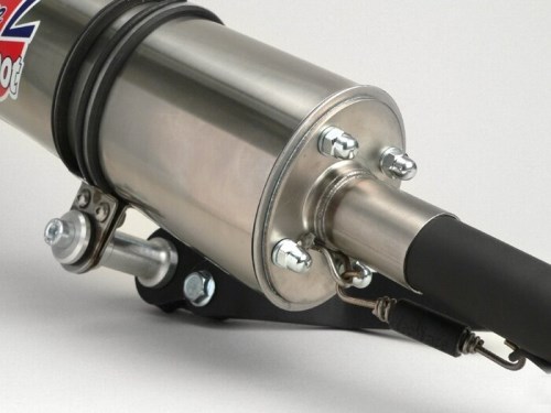 Scarico -LEOVINCE Hand Made- GY6 50cc (139QMB). La serie LeoVince Handmade è completamente legale per la circolazione su strada grazie alla sua marcatura E-. Lo scarico, di eccellente fattura, è dotato di un silenziatore posteriore in stile Moto X. Questo fornisce un suono strozzato a 4 tempi che ricorda più una Super Moto di grossa cilindrata che uno scooter da 50cc. Il materiale di montaggio completo è incluso nella fornitura e l'installazione è un gioco da ragazzi. Tuttavia, dovrete armeggiare se il parafango è fissato allo scarico originale. Il Leo non ha questa staffa, ma questo non è un grosso problema per gli smanettoni. Quando è montato, lo scarico copre la vite di misurazione dell'olio Tuttavia, lo scarico può essere rimosso in pochi minuti grazie alla sospensione a molla. Attenzione! Adatto solo ai modelli Euro4 con modifica.Traduzione AI