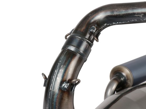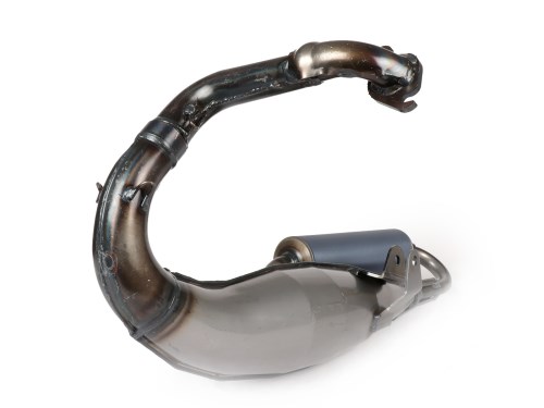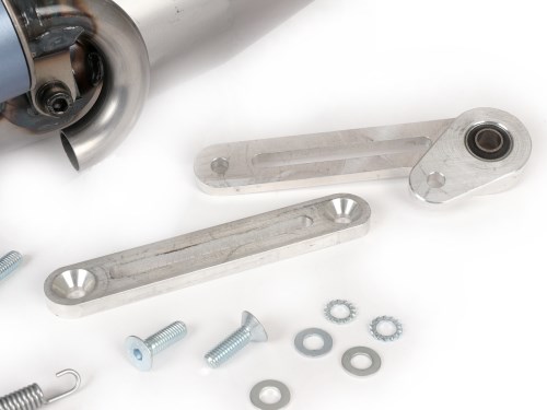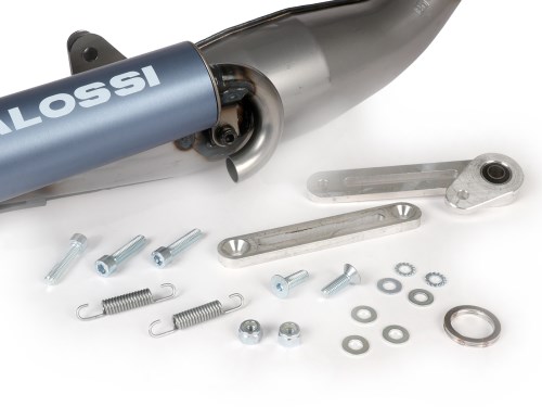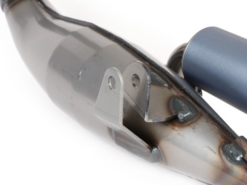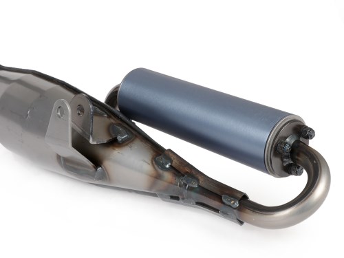 Omologazione europea valida per: PEUGEOT VGAS1B. L'omologazione non limita l'installazione su altri veicoli.Scarico in lamiera d'acciaio fine, spessore 1,5 mm, fabbricato per pressatura. Piastre deflettrici nel silenziatore per la riduzione del rumore. Piastra di fissaggio in metallo smorzato dalle vibrazioni. Silenziatore posteriore in alluminio ricaricabile. Nota: I sistemi di retrofit di solito hanno sempre più potenza dello scarico originale. Per ottenere l'approvazione, sono strozzati in fabbrica, il che può provocare uno spostamento della banda di potenza. Affinché lo scooter raggiunga la sua piena potenza e velocità, potrebbe quindi essere necessario adattare il motore al nuovo scarico con diversi pesi del variatore, molle della frizione e/o getto del carburatore, anche se deve essere usato a manetta su un motore di serie.AI-translation