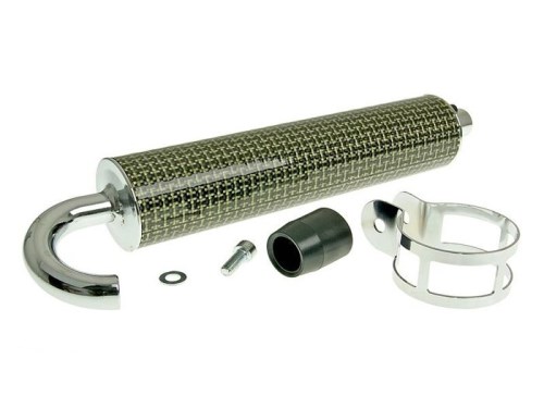 Il NARAKU Crossover combina un design ottico da corsa con una struttura interna che si adatta esattamente ai requisiti fisici di un motore a 4 tempi. Il tutto con l'omologazione stradale E-mark. La maggior parte dei sistemi di scarico a 4 tempi viene semplicemente presa in prestito dai produttori della serie a 2 tempi, adattando solo i supporti. Il risultato è un sistema visivamente accattivante con valori di prestazioni per lo più peggiori rispetto allo scarico originale. Il Crossover consente di raggiungere l'attuale limite massimo di sviluppo delle prestazioni per i motori GY6 50cc attraverso un sistema di scarico grazie alla struttura interna messa a punto. Questo lo rende uno dei sistemi più potenti per questi motori. Questo sistema è rivestito di nero, con silenziatore posteriore in vero carbonio. Edizione nera. Questo gli conferisce un aspetto "nascosto" ed è interessante per tutti coloro che non amano le cose così appariscenti. Il rivestimento nero può essere riportato al suo massimo splendore in qualsiasi momento con una vernice per scarichi. Il rivestimento non dura nella zona del collettore. Traduzione AI