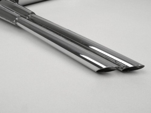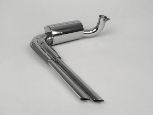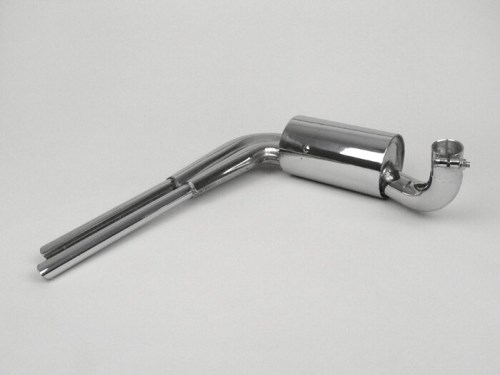 Scarico da corsa nel design contemporaneo. Dalla fine degli anni Cinquanta in poi, nessun ambizioso Vespisti ha potuto aggirare lo scarico. L'ottica affilata e il suono sportivo e ovattato sono semplicemente divertenti. L'acciaio inossidabile utilizzato sopravvive anche in inverno ed è di facile manutenzione. L' a umento delle prestazioni è piuttosto modesto. AI-translation