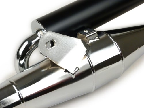 OMOLOGAZIONE Purtroppo non c'è l'approvazione per gli e-passaporti/pubblici trasporti Il Next-R di Tecnigas è uno dei sistemi più venduti della sua categoria. Oltre al prezzo favorevole, le buone prestazioni e il bel suono sono gli argomenti principali per questo sistema di scarico prodotto in Spagna. OPTIK È disponibile in acciaio verniciato trasparente o in versione cromata nobile. PRESTAZIONI L 'erogazione di potenza del Next R è molto armonica e quindi come un ottimo scarico a tutto tondo è super flessibile. Sia che si tratti di un cilindro sportivo da 50ccm standard o da 70ccm è una buona scelta e offre una prestazione di tutto rispetto con un'ampia banda di potenza. Così potete far crescere il vostro motore senza dover acquistare sempre un nuovo scarico. E-PASS Purtroppo non c'è E-PASS THROTTTLE Sebbene non sia registrato, il Next-R è dotato di una manica a farfalla nella zona del collettore anteriore. Con questo funziona quasi come un sistema di scarico standard. Se questo viene rimosso il Next-R può fare un respiro profondo e porta molta più potenza sulla strada. NOT A Affinché lo scooter possa raggiungere la sua piena potenza e velocità può essere quindi necessario adattare il motore al nuovo sistema di scarico con diversi pesi del variatore e/o molle della frizione, anche se deve essere utilizzato su un motore di produzione. AI-translation