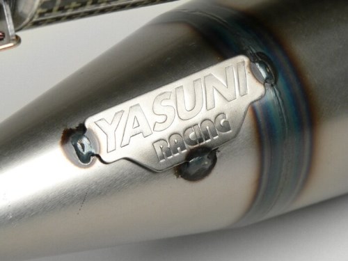 Scarico YASUNI CITY 16 con E-marking. La lavorazione è della solita alta qualità. Inoltre, piccoli dettagli completano l'impressione perfetta del sistema. Ad esempio, il passaggio dal corpo di risonanza alla marmitta non è solo rinforzato, ma anche sigillato con un O-ring. Anche il collettore è prodotto in singoli segmenti e convince con una finitura perfetta e un design ben studiato. Senza acceleratore, lo scarico può essere utilizzato solo per scopi di gara. Ma in cambio si trasforma in un'arma di sintonia. La lunghezza di risonanza molto breve in relazione ad un corpo di scarico ben dimensionato lascia girare la CITY 16 fino all'arrivo del medico. Dove altri sistemi della classe sono rimasti a corto d'aria per molto tempo, il CITY 16 è ancora a piena potenza. Questo fa della CITY 16 la nostra punta di diamante per tutti coloro che vogliono costruire un corridore da strada veloce e affidabile. Con i cilindri Due+, Manston Replica e MHR Replica, la CITY 16 può spingere su strada ben più di 14 CV, anche con un carburatore da 17,5 e una buona messa a punto. E tutto questo Plug & Play! Le velocità più elevate, tuttavia, richiedono un certo lavoro di messa a punto. Quindi non solo si devono scegliere pesi più leggeri, ma anche la frizione deve essere imballata in un secondo momento. Conclusione: una granata di potenza che garantisce una velocità massima decente! La strozzatura del sistema viene effettuata dal ben noto disco nel collettore, che viene fissato con due punti di saldatura. Inoltre c'è una rastrematura nel silenziatore posteriore, che dovrebbe entrare anche nel grande ripiano rotondo dell'officina per ottenere la massima potenza. Oltre a questo anche qui ancora il diavolo a pinza si annida sotto forma di surriscaldamento. Si prega di notare: Di norma, i sistemi di retrofit hanno sempre una potenza maggiore rispetto allo scarico originale. Per ottenere un'approvazione, vengono strozzati in fabbrica, il che può causare uno spostamento della banda di potenza. Affinché lo scooter possa raggiungere la sua piena potenza e velocità, può quindi essere necessario adattare il motore al nuovo scarico con altri pesi del variatore e/o molle della frizione, anche se queste ultime devono essere utilizzate strozzate su un motore di produzione. AI-translation