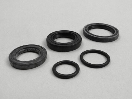 Set di cuscinetti motore Lambretta composto da: Cuscinetto a rullini NAO 20-37-16 - albero motore lato alternatore Cuscinetto a sfere 6303 - albero motore lato trasmissione Cuscinetto a sfere Casa Lambretta ruota posteriore CL616 Cuscinetto a rullini albero principale/piastra di copertura del cambio CL615 Cuscinetto a rullini albero ausiliario/alloggiamento motore Cuscinetto a sfera 6202 Albero ausiliario/piastra di copertura del cambio Esistono in totale quattro diversi set di cuscinetti motore per le serie Lambretta lui e Junior. Si distingue tra i modelli con cambio a 4 e a 3 marce. In questo caso si differenzia il cuscinetto lato guida: I modelli a 4 marce (lui 75 e J125 4m) utilizzano il cuscinetto 62204 Tutti gli altri (lui 50, J50, J100, J125 3m) utilizzano il cuscinetto 6303. Un'ulteriore distinzione viene fatta in base all'anno di produzione. Fino a marzo 1969, viene utilizzato il cuscinetto a rullini NAO 20-37-16, più complesso e più costoso, mentre per i modelli costruiti dopo questa data viene utilizzato il cuscinetto a sfere 6204. I cuscinetti per il lato alternatore non sono intercambiabili e devono essere utilizzati con l'alloggiamento della ventola e l'albero motore corrispondenti.Traduzione AI