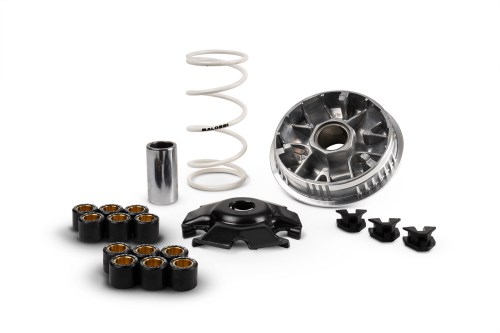 Die Variomatik MALOSSI Multivar bringt dank eines wesentlich optimierten Schaltvorgangs schon auf Serienmotoren sehr gute Ergebnisse im Hinblick auf die Verbesserung von Top Speed und Beschleunigung, und dass ohne den Motor stärker zu belasten. So sind für jedes Modell die Rollenlaufringe spezifisch kalkuliert worden und der Nutzumfang der Gleitoberfläche des Riemens ist zusätzlich erweitert worden. Bei so einem hohen technologischen Aufwand ist es nahezu selbstverständlich, dass die besten Materialien und die modernsten Fertigungsmethoden Anwendung finden: Selbstschmierende Gleitbuchse aus Sinterstahl Nabe aus legiertem Stahl Gleitoberfläche mit einer Auflage aus hartem, geschliffenem und geläppeltem Chrom Halbriemenscheibe aus Silizium-Aluminiumlegierung mit Präzisions-NC-Maschinen gefertigt Diamanten-Endbearbeitung . Damit steht ganz neuem Fahrspaß nichts mehr im Wege. Ruckfreies Anfahren, größerer Schaltkomfort, mechanische -Stille- auch bei hoher Geschwindigkeit und konstante Fahrleistungen sind das Ergebnis.
