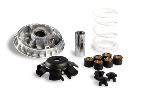 Die Variomatik MALOSSI Multivar bringt dank eines wesentlich optimierten Schaltvorgangs schon auf Serienmotoren sehr gute Ergebnisse im Hinblick auf die Verbesserung von Top Speed und Beschleunigung, und dass ohne den Motor stärker zu belasten. So sind für jedes Modell die Rollenlaufringe spezifisch kalkuliert worden und der Nutzumfang der Gleitoberfläche des Riemens ist zusätzlich erweitert worden. Bei so einem hohen technologischen Aufwand ist es nahezu selbstverständlich, dass die besten Materialien und die modernsten Fertigungsmethoden Anwendung finden: Selbstschmierende Gleitbuchse aus Sinterstahl Nabe aus legiertem Stahl Gleitoberfläche mit einer Auflage aus hartem, geschliffenem und geläppeltem Chrom Halbriemenscheibe aus Silizium-Aluminiumlegierung mit Präzisions-NC-Maschinen gefertigt Diamanten-Endbearbeitung . Damit steht ganz neuem Fahrspaß nichts mehr im Wege. Ruckfreies Anfahren, größerer Schaltkomfort, mechanische -Stille- auch bei hoher Geschwindigkeit und konstante Fahrleistungen sind das Ergebnis.
