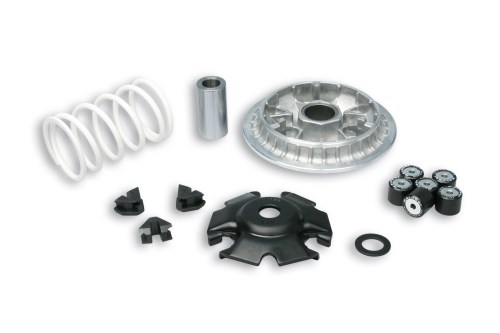 Die Variomatik MALOSSI Multivar bringt dank eines wesentlich optimierten Schaltvorgangs schon auf Serienmotoren sehr gute Ergebnisse im Hinblick auf die Verbesserung von Top Speed und Beschleunigung, und dass ohne den Motor stärker zu belasten. So sind für jedes Modell die Rollenlaufringe spezifisch kalkuliert worden und der Nutzumfang der Gleitoberfläche des Riemens ist zusätzlich erweitert worden. Bei so einem hohen technologischen Aufwand ist es nahezu selbstverständlich, dass die besten Materialien und die modernsten Fertigungsmethoden Anwendung finden: Selbstschmierende Gleitbuchse aus Sinterstahl Nabe aus legiertem Stahl Gleitoberfläche mit einer Auflage aus hartem, geschliffenem und geläppeltem Chrom Halbriemenscheibe aus Silizium-Aluminiumlegierung mit Präzisions-NC-Maschinen gefertigt Diamanten-Endbearbeitung . Damit steht ganz neuem Fahrspaß nichts mehr im Wege. Ruckfreies Anfahren, größerer Schaltkomfort, mechanische -Stille- auch bei hoher Geschwindigkeit und konstante Fahrleistungen sind das Ergebnis.