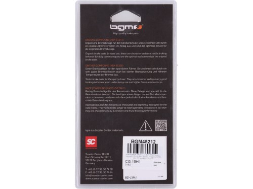 Con l'aiuto di tutte le informazioni disponibili sui produttori e della nostra pluriennale esperienza, abbiamo cercato di trattare l'argomento dei componenti dei freni nel modo più accurato possibile, , ma purtroppo ciò non è possibile al 100%. A seconda della disponibilità al momento della produzione del veicolo, i costruttori possono utilizzare combinazioni diverse di componenti installati. In caso di dubbio, vi chiediamo quindi di verificare la compatibilità utilizzando le foto del prodotto e le dimensioni specificate prima dell'ordine. Va da sé che gli articoli ordinati per errore possono essere restituiti con spese di spedizione sufficienti e in condizioni pari al nuovo/vendibile entro i termini previsti dalla legge. Grazie per la vostra comprensione. Le pastiglie freno BGM sono prodotte da un'azienda altamente specializzata in Europa. Con oltre 40 anni di esperienza nella produzione (ad esempio, Aprilia e Piaggio) e un forte impegno nelle corse, questa azienda produce pastiglie freno di alta qualità per BGM. Le pastiglie BGM hanno una speciale mescola organica che combina ottime prestazioni di frenata con enormi riserve di sicurezza. L'elevatissima stabilità termica di una pastiglia organica garantisce un feedback eccellente anche in condizioni estreme e consente di dosare con precisione la forza frenante. Un motore potente offre il vantaggio di essere sempre al primo posto. I freni di qualità superiore offrono il vantaggio di avere sempre il controllo. Una sicurezza che si percepisce e di cui non si vuole fare a meno. Pastiglie freno BGM - potenza di controllo Con numero TÜV/KBA (USA)Traduzione AI