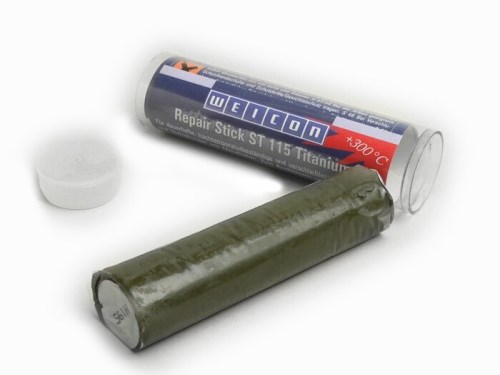 La soluzione semplice per tutti i lavori di riparazione e manutenzione. Facile da maneggiare: Taglio - impastamento - lavorazione. Può essere porzionato in qualsiasi momento, anche per piccole riparazioni. I bastoncini di riparazione WEICON sono resistenti alle temperature da -50°C a +280°C (a breve termine fino a +300°C). Sono resistenti all'alcool, all'estere, all'acqua salata, agli oli e alla maggior parte degli alcali e degli acidi diluiti. Non contengono solventi e polimerizzano praticamente senza restringersi. Il materiale polimerizzato può essere lavorato meccanicamente (foratura, limatura, fresatura) e sovraverniciato senza pretrattamento. I bastoncini di riparazione WEICON aderiscono a: MetalloFibra Plastica DuraFibra Compositi L egno/Legno MaterialiVetro / Ceramica / Ceramica / Pietra . Lo Stick Titanium viene utilizzato per riparazioni durature, ad alta temperatura (fino a +300°C) e resistenti all'usura e per l'incollaggio di parti metalliche, ad es. su Serbatoi e tubi, alluminio, metallo leggero e parti stampate ad iniezione, alberi, cuscinetti a scorrimento, pompe e alloggiamenti e per filettature strappate. Può essere utilizzato anche come composto universale per riparazioni ad alta temperatura. AI-translation