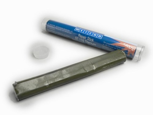 La soluzione semplice per tutti i lavori di riparazione e manutenzione. Facile da maneggiare: Taglio - impastamento - lavorazione. Può essere porzionato in qualsiasi momento, anche per piccole riparazioni. I bastoncini di riparazione WEICON sono resistenti alle temperature da -50°C a +280°C (a breve termine fino a +300°C). Sono resistenti all'alcool, all'estere, all'acqua salata, agli oli e alla maggior parte degli alcali e degli acidi diluiti. Non contengono solventi e polimerizzano praticamente senza restringersi. Il materiale polimerizzato può essere lavorato meccanicamente (foratura, limatura, fresatura) e sovraverniciato senza pretrattamento. I bastoncini di riparazione WEICON aderiscono a: MetalloFibra Plastica DuraFibra Compositi L egno/Legno MaterialiVetro / Ceramica / Ceramica / Pietra . Lo Stick Titanium viene utilizzato per riparazioni durature, ad alta temperatura (fino a +300°C) e resistenti all'usura e per l'incollaggio di parti metalliche, ad es. su Serbatoi e tubi, alluminio, metallo leggero e parti stampate ad iniezione, alberi, cuscinetti a scorrimento, pompe e alloggiamenti e per filettature strappate. Può essere utilizzato anche come composto universale per riparazioni ad alta temperatura. AI-translation