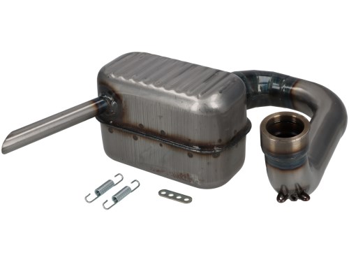 Marmitta -PREMIUM, banana (IGM4311S)- Vespa SS90 (V9SS1T) - adatto anche per Vespa SS50 (V5SS1T), V50, 50N, V90 - Cromo (gomito di scarico zincato)